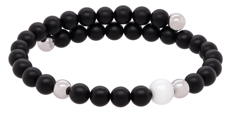 Meissen Armreif Pearl Collection Onyx, Asymmetrisch, 1 Porzellanperle 8 Mm, 4 Perlen 6 Mm 925 Sterlingsilber, 32 Onyx Pe