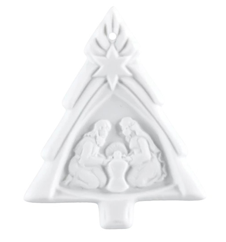 Meissen Baumschmuck, Weihnachtsbaum Mit Maria & Josef, Medaillen, Weiß, H 5,5 Cm