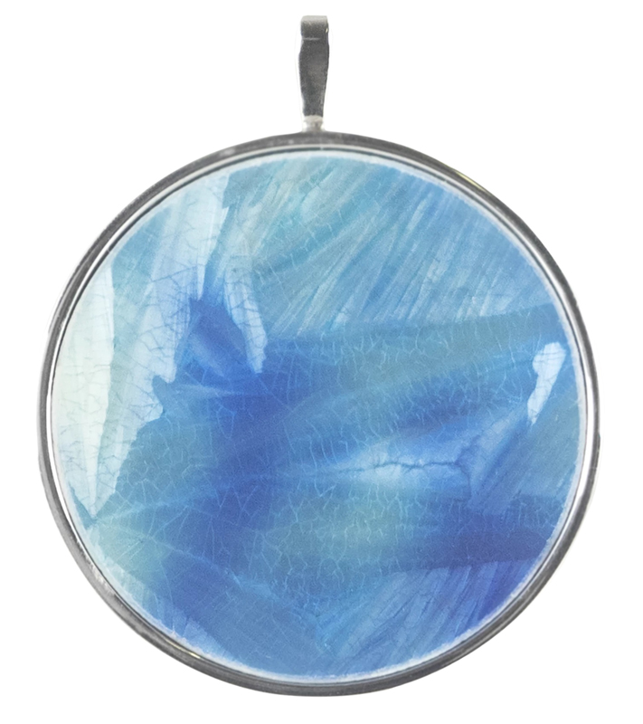 Meissen Anhänger Kristallglasur Türkis-Kobaltblau Mit Fassung In 925 Sterlingsilber, Ø Cm